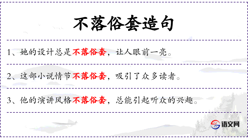 - 不落俗套:表示与众不同,新颖独特。
