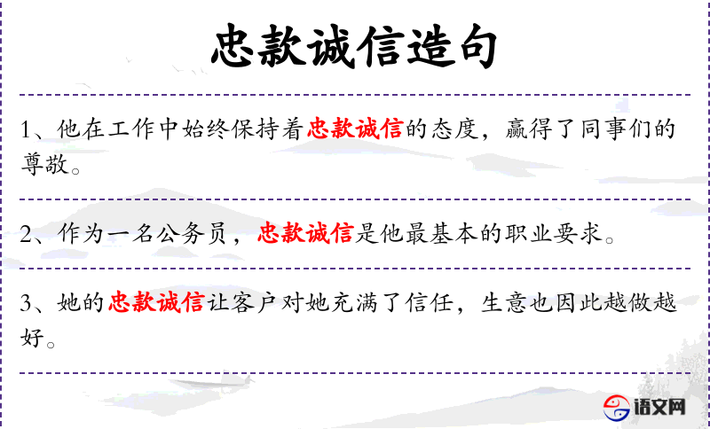 - 主语:“忠款诚信”