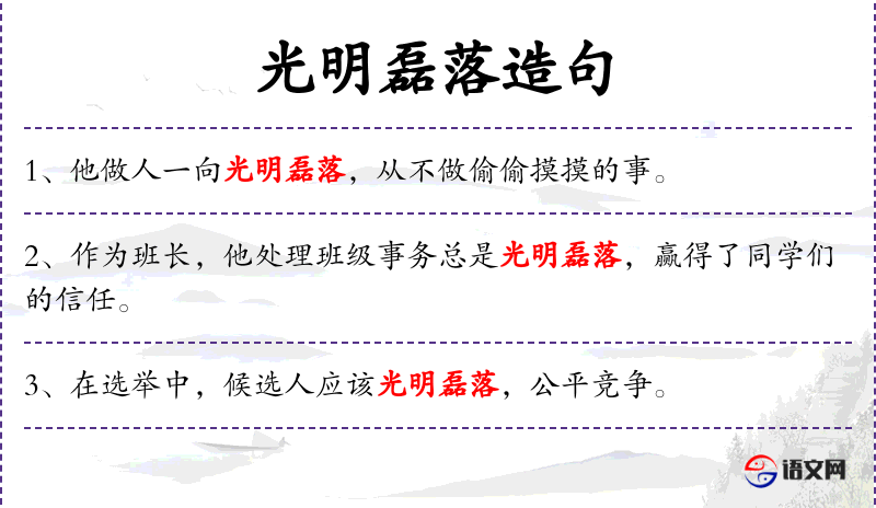 光明磊落:形容词短语,形容人正直、坦率