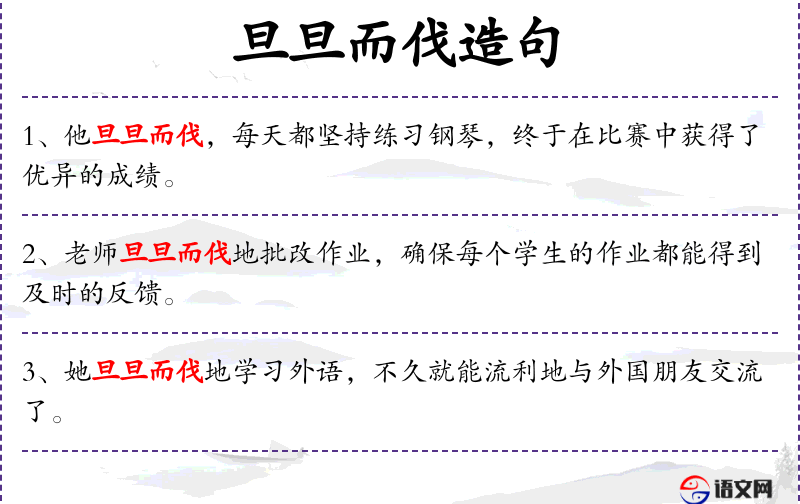 句子:“**员旦旦而伐地训练,准备参加即将到来的比赛。”