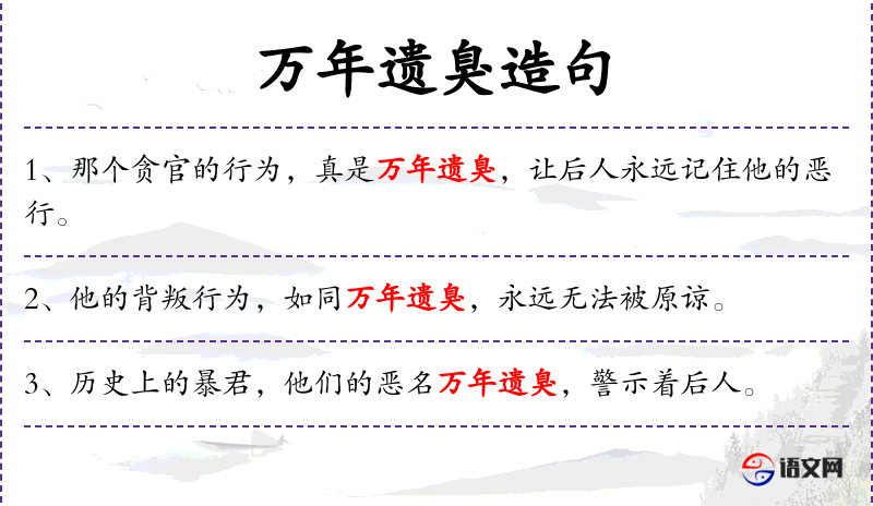 - 万年遗臭:形容坏名声永远流传,臭名昭著。