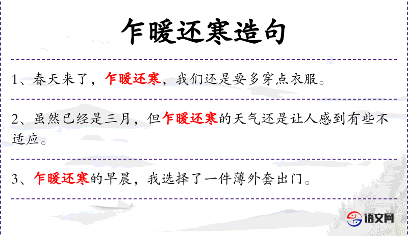 - 乍暖还寒:形容天气变化无常,刚刚暖和又变冷。