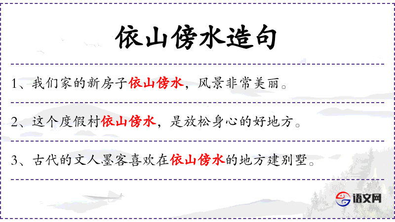 - “依山傍水”在**文化中常被视为理想居住地的象征,寓意安定和富饶。