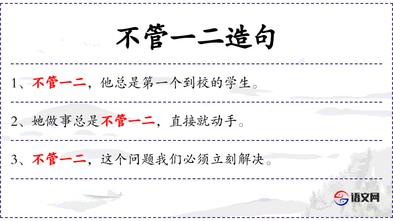 1. 【不管一二】 - 不论是非情由,不顾后果。