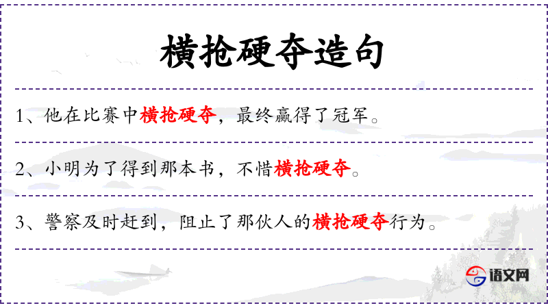1. 【横抢硬夺】 - 指用强力夺取。