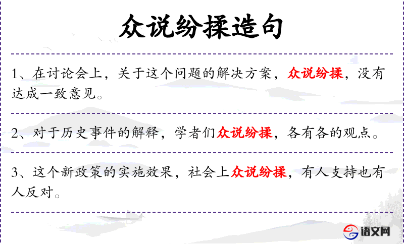 - 主语:众说纷揉