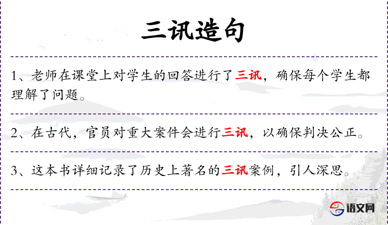 2. 【三讯】 - 多方查询。形容决狱之慎重。