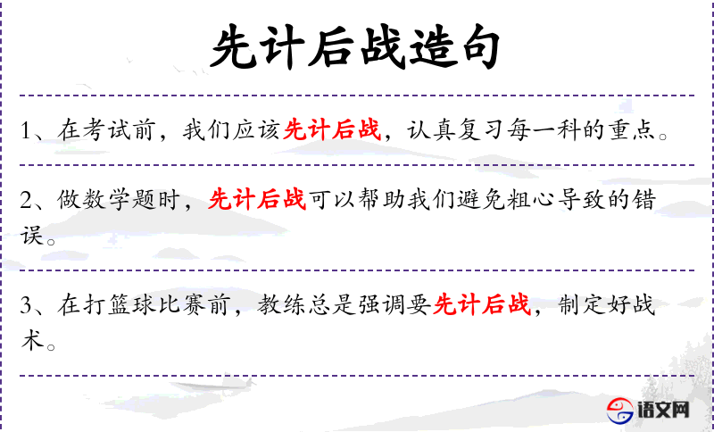 句子:“面对复杂的项目,我们团队决定先计后战,详细规划每一步。”