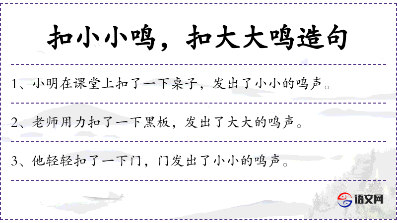 - 为了引起注意,老师用力敲了一下黑板,结果发出了响亮的鸣声。