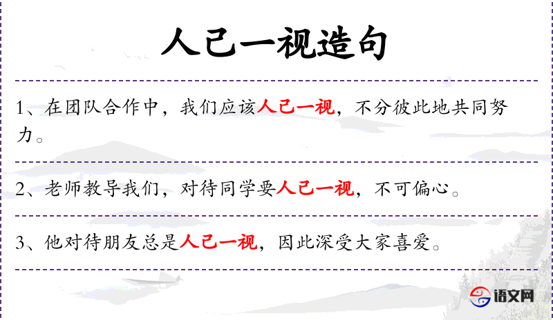 - 人己一视:成语,表示对待别人和自己一样公平。