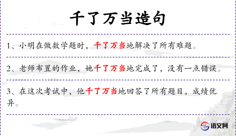 - 文化背景和社会*俗可能影响对“千了万当地”这一表达的理解,通常在鼓励努力和智慧的情境中使用。