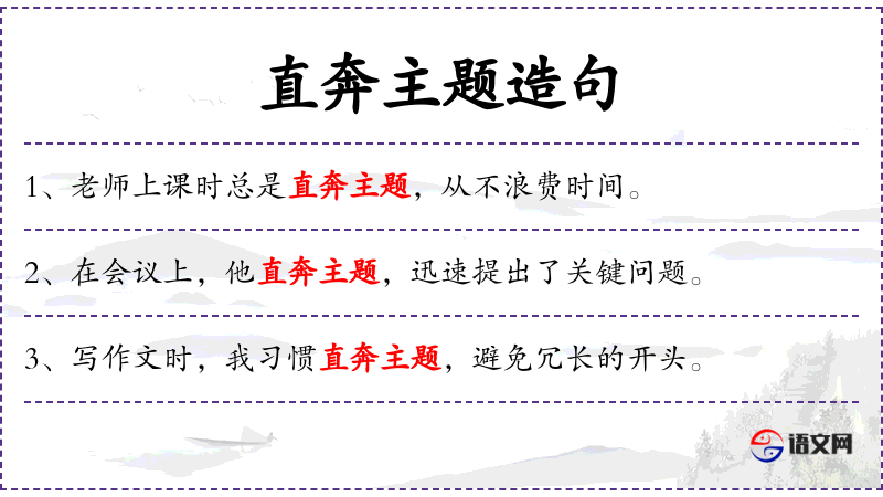 1. 【直奔主题】 - 径直、直接地投入主要问题,不拐弯抹角。
