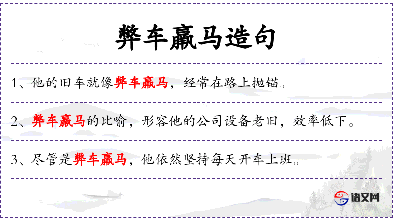 - “弊车羸马使得他的旅行充满了不确定性。”