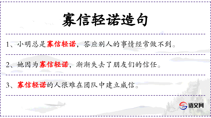- 寡信轻诺:指不守信用,轻易许诺。