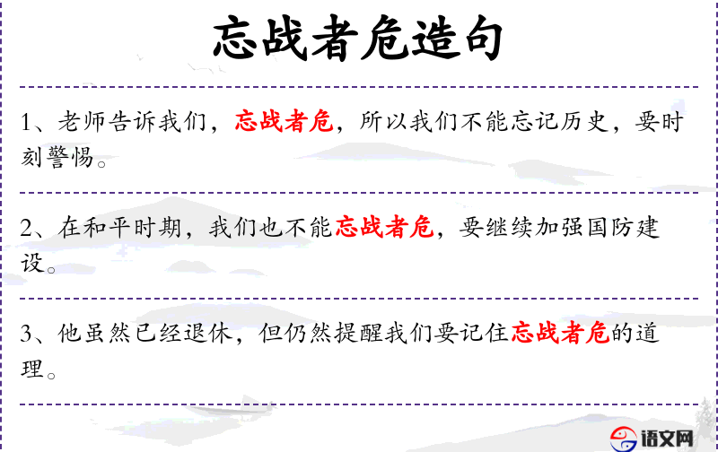 - 句子强调即使在和平时期,也不能忽视战争的危险性,需要持续加强国防建设。