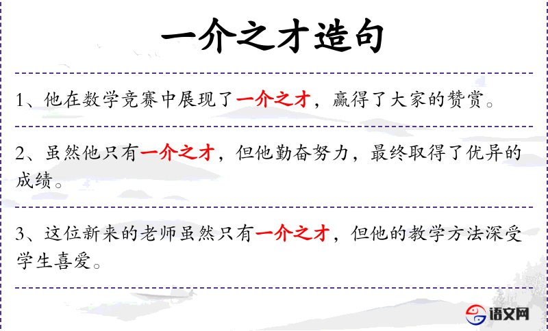 - 一介之才:指某人只有一般的才能或能力。