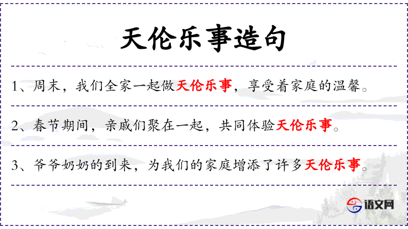 - 天伦乐事:指家庭成员间的快乐和幸福的事情。