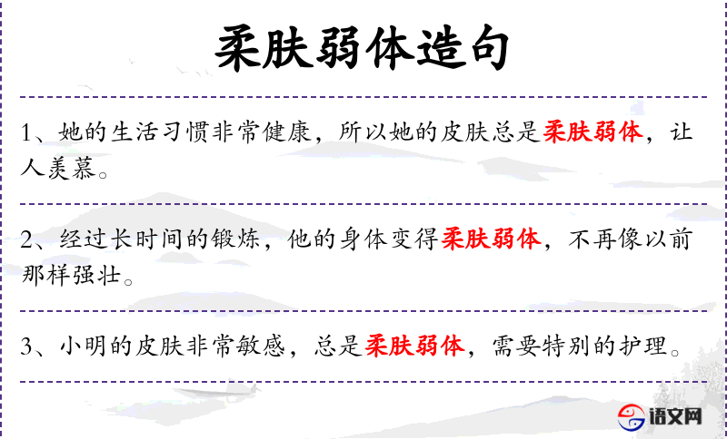 4. 【柔肤弱体】 - 指柔弱的身体。