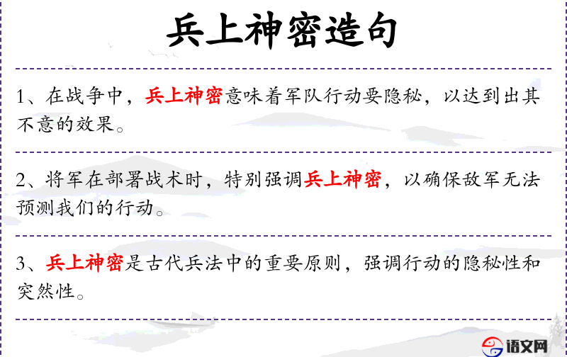 - 兵上神密:这个词组可能是“兵法神秘”或“兵力神秘”的误写,意指军队或战术的神秘性或不可预测性。