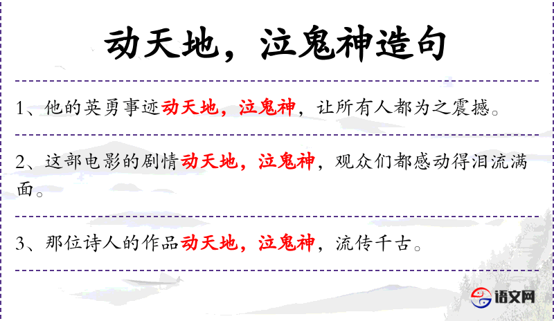 - 泣鬼神:形容作品感人至深,连鬼神都会为之动容。