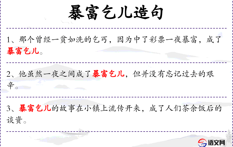 4. 【暴富乞儿】 暴:突然;乞儿:乞丐。乞丐突然间富裕了。指非常规的地突然变得富有。