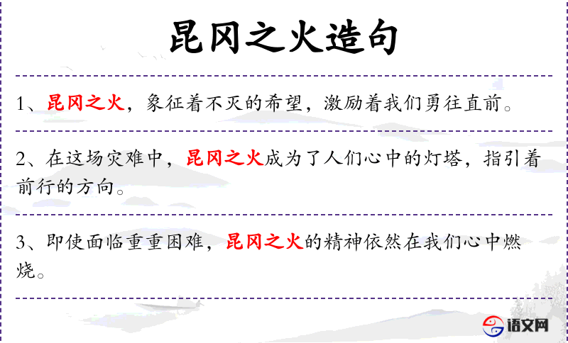 句子:“面对挑战,我们要像昆冈之火一样,永不言败。”