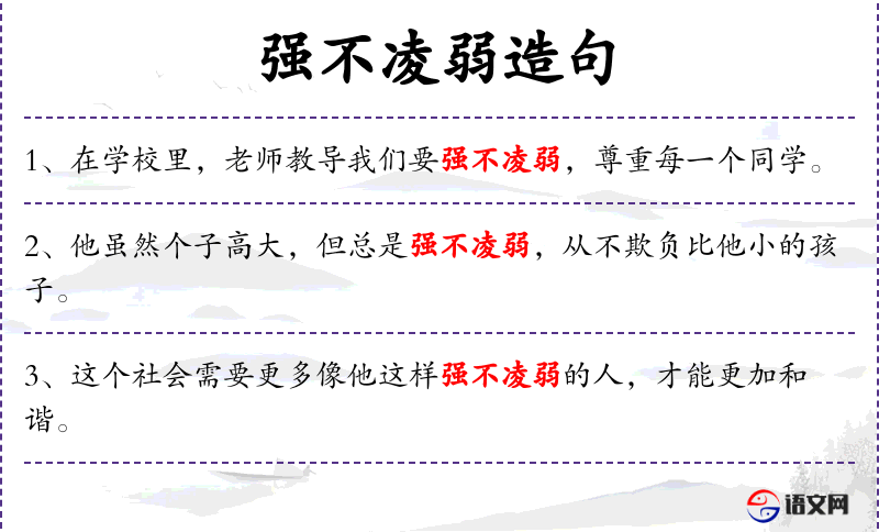 - 强不凌弱:表示强者不欺负弱者,是一种道德原则。