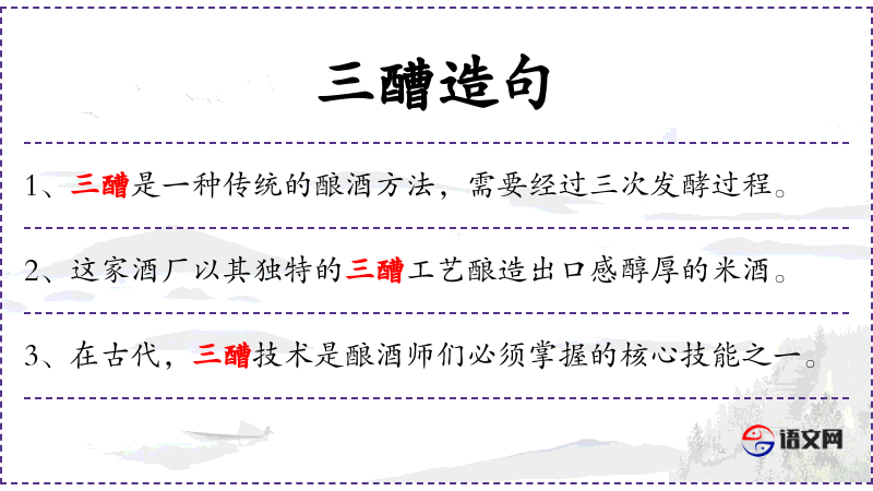 1. 【三醩】 - 古代宴饮礼节。食毕进酒漱口谓之醩,有安食养乐之义。"三醩"即第三次进酒。