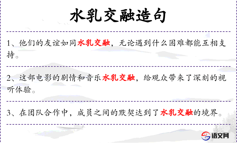 1. 【水乳交融】 - 交融:融合在一起。象水和乳汁融合在一起。比喻感情很融洽或结合十分紧密。