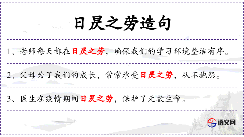 句子:“[父母为了我们的成长,常常承受日昃之劳,从不抱怨。]”
