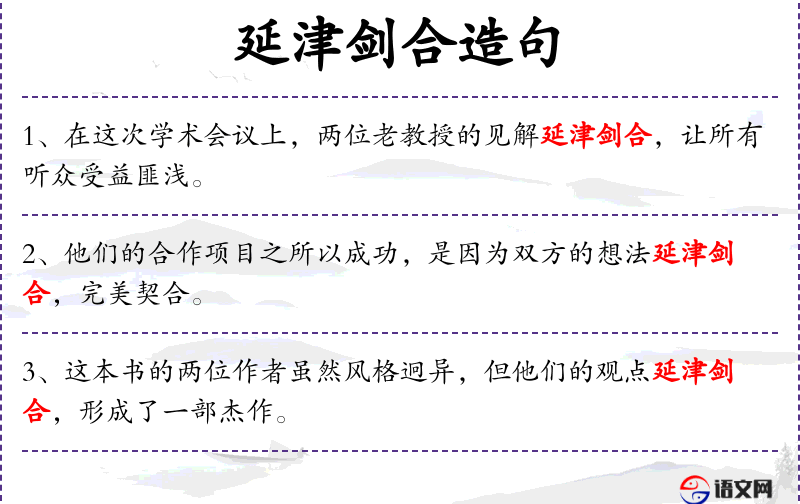- 延津剑合:这是一个成语,比喻意见或观点相合,互相补充。