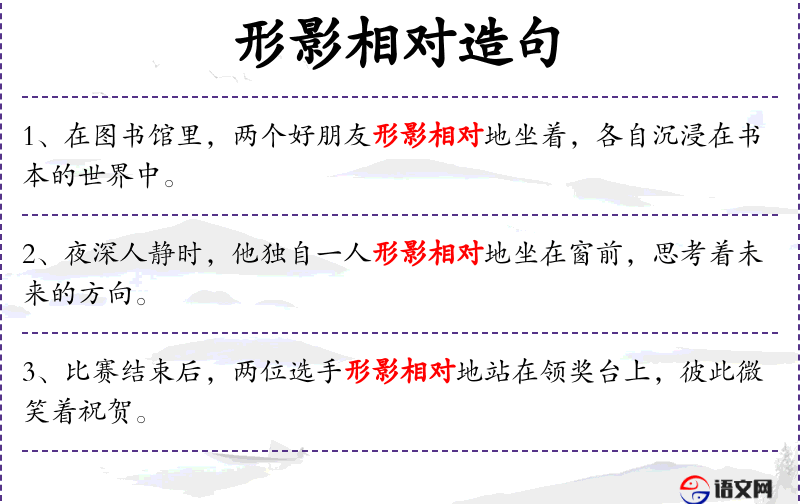 - 形影相对:形容人们相互依靠,关系密切。