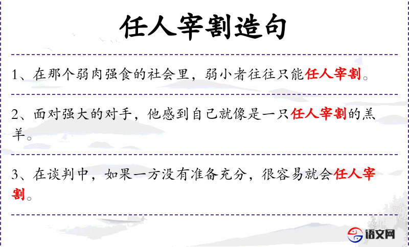 - 任人宰割的羔羊:这个表达在**文化中常用来形容一个人在面对强大对手时的无助和脆弱。