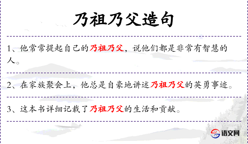 - 乃祖乃父:名词短语,指祖父和父亲。