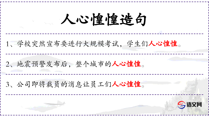 - 谓语:“人心惶惶”