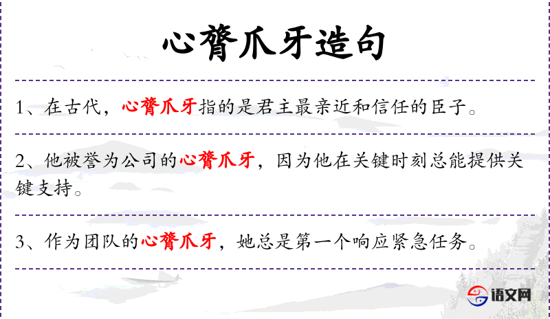 - 心膂爪牙:这个成语源自古代,用来形容最亲近、最得力的助手。在文化中,忠诚和能力是评价一个人的重要标准。