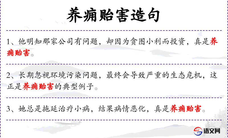 - 成语“养痈贻害”源自**传统文化,强调了姑息坏事的后果。