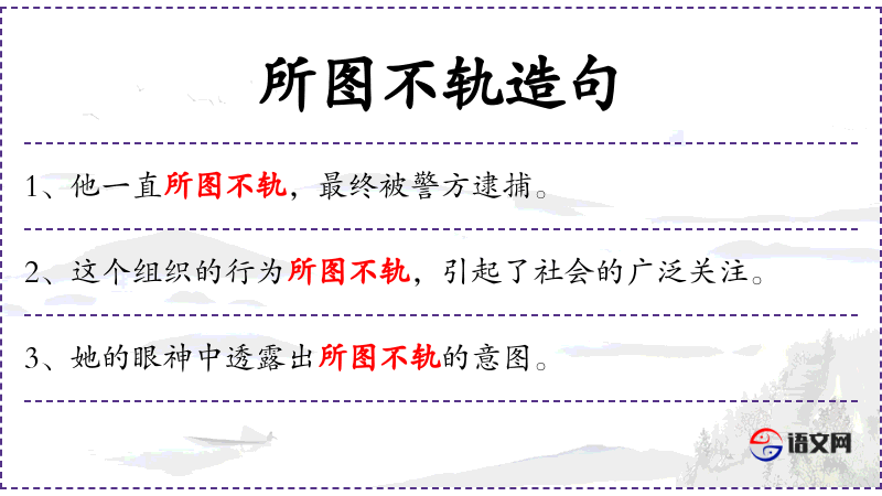 - 所图不轨:这个成语在**文化中常用于描述某人有不良的企图或行为,强调了行为的负面性质。