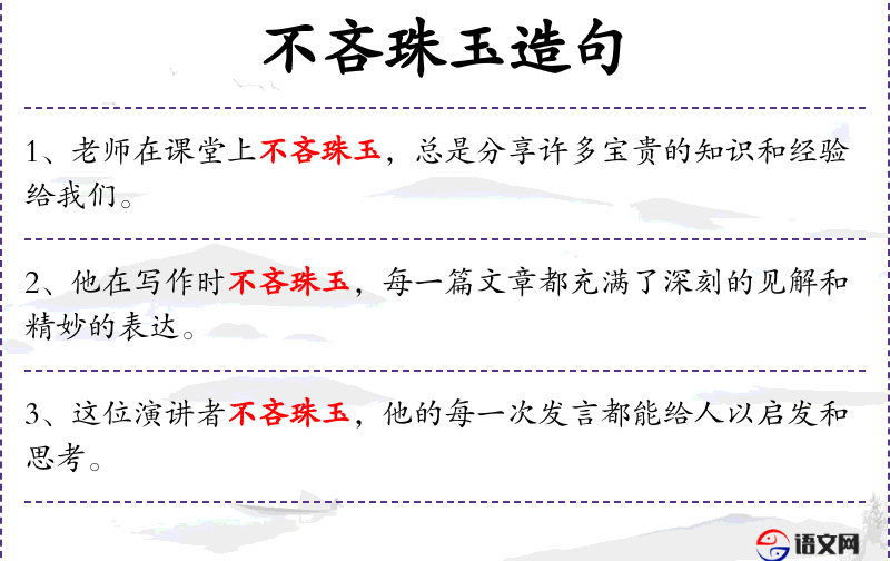 “吝珠玉”在**文化中是一个常用的比喻,用来形容不吝惜珍贵的东西。这个成语体现了对艺术和创作的尊重。