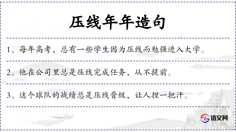 - 同义词:“压线通过”可以替换为“勉强及格”;“学态度”可以替换为“学心态”或“学*方法”。