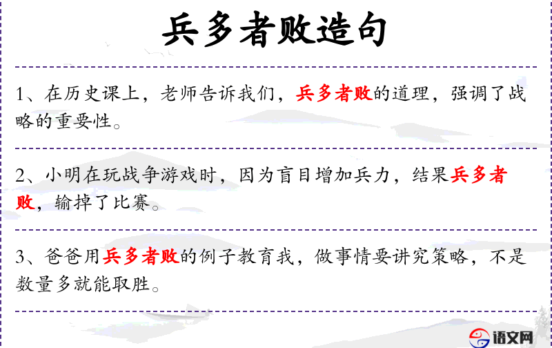 - 成语:“用兵多者败”是一个成语,源自**古代军事思想,强调策略胜于数量。
