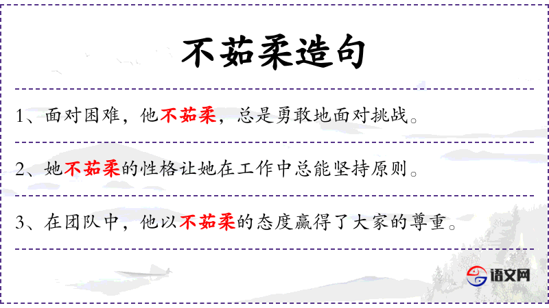 1. 【不茹柔】 - 语本《诗.大雅.焌民》"维仲山甫,柔亦不茹,刚亦不吐。"谓不欺弱小。