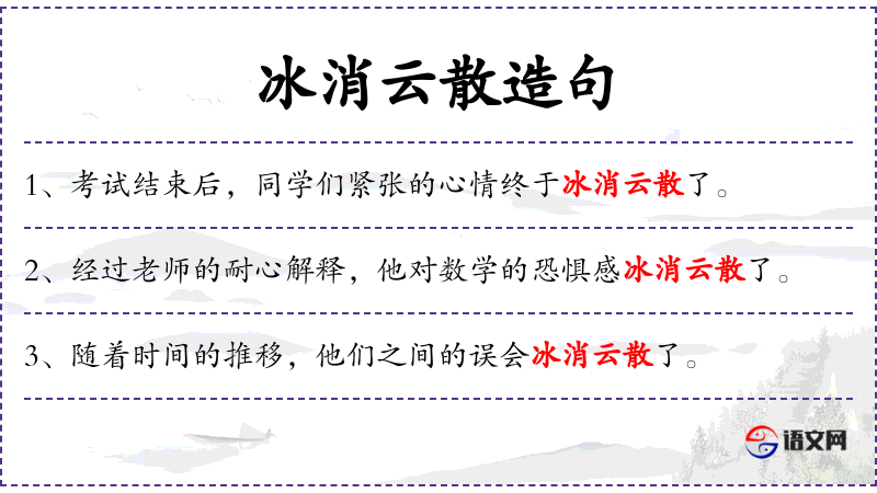 - 谓语:“冰消云散了”是句子的谓语,表示紧张气氛的消失。