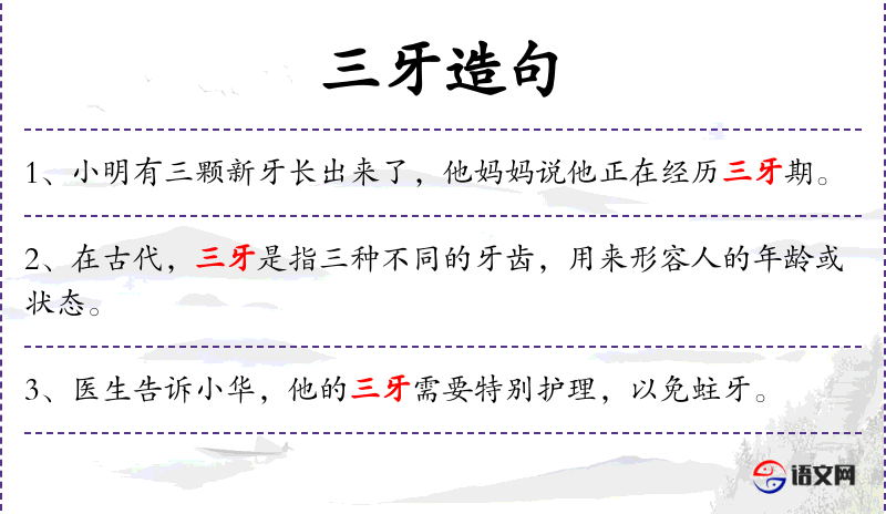 1. 【三牙】 指三岁的牲口; 犹三丫。