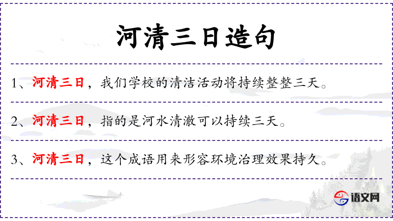 4. 【河清三日】 - 为升平祥瑞的预兆。