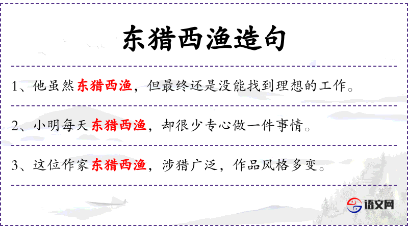 - 东猎西渔:成语,比喻到处寻找或努力。