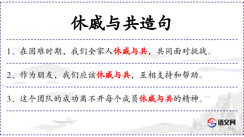 - 谓语:休戚与共,共同伸出援手