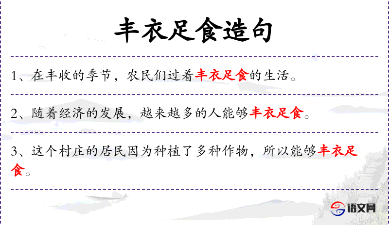 - 宾语:“丰衣足食”