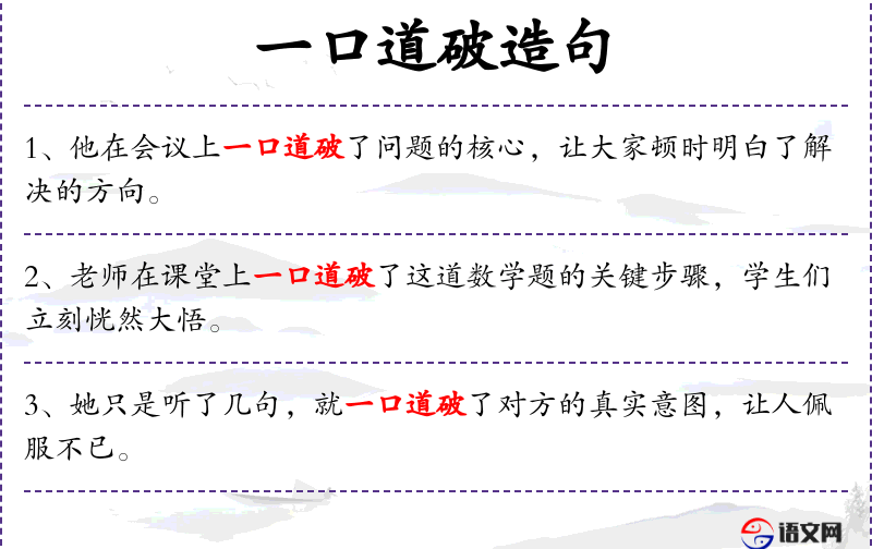 1. 【一口道破】 道:说;破:揭穿。一句话就说穿了。