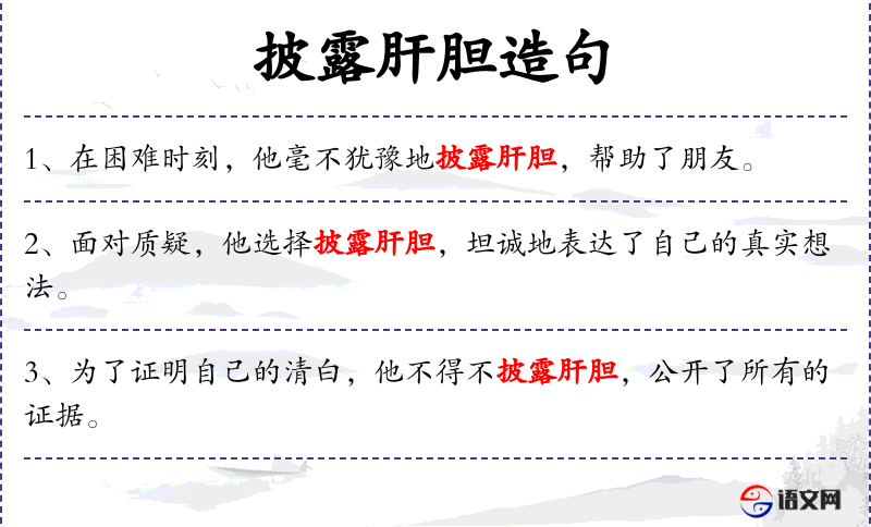 文化意义:“披露肝胆”源自传统文化,比喻真诚和坦率。 相关成语**:肝胆相照(比喻彼此非常真诚)。